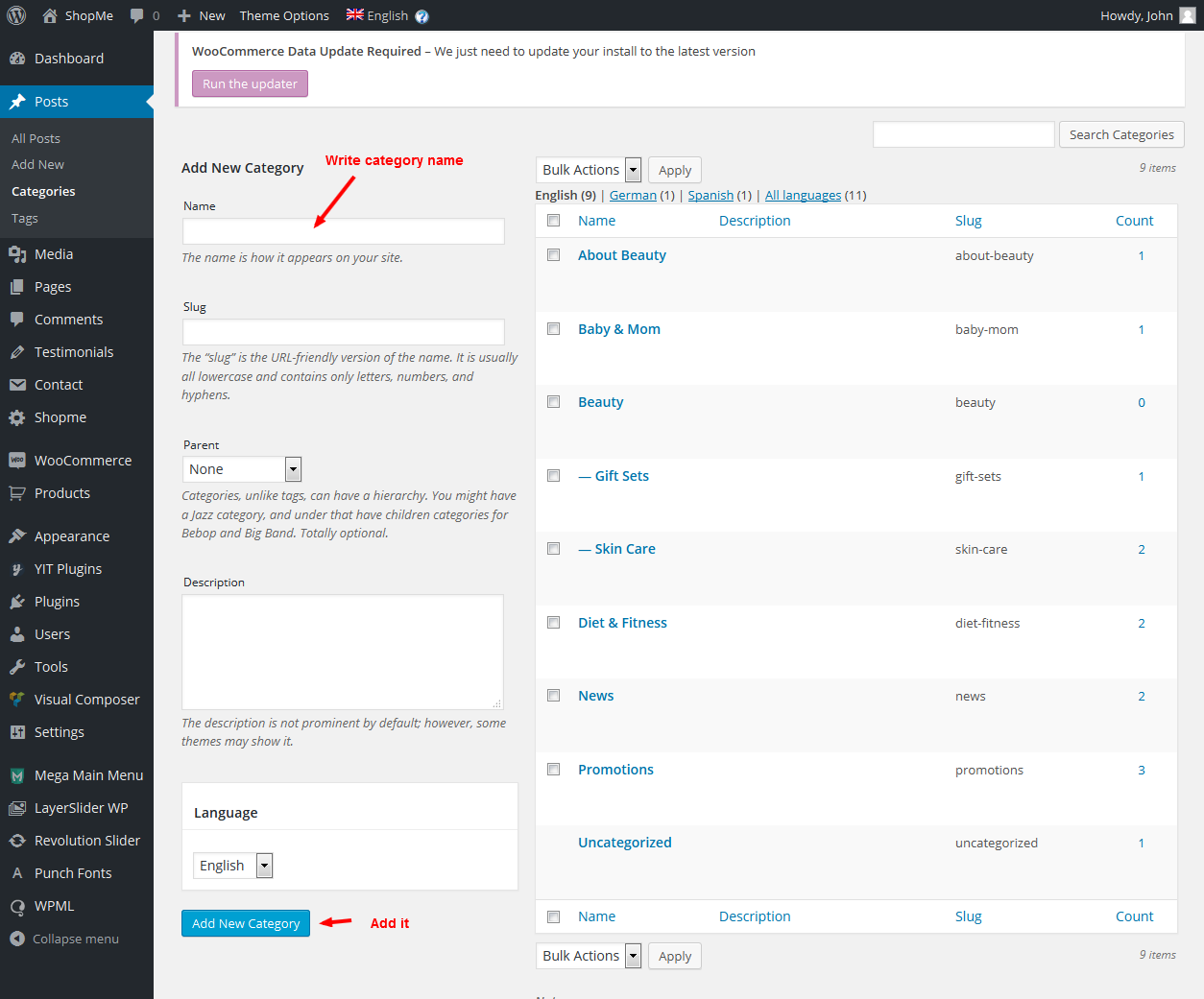 Install new shopme.zip, activate.