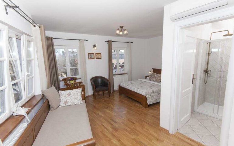 Housed in a traditional building, all rooms come with hardwood floors and wooden furnishings, and are accessible by elevator. They offer either a view of Ljubljana Castle or of the Old Town. Amenities include an LCD satellite TV, a safe and air conditioning.